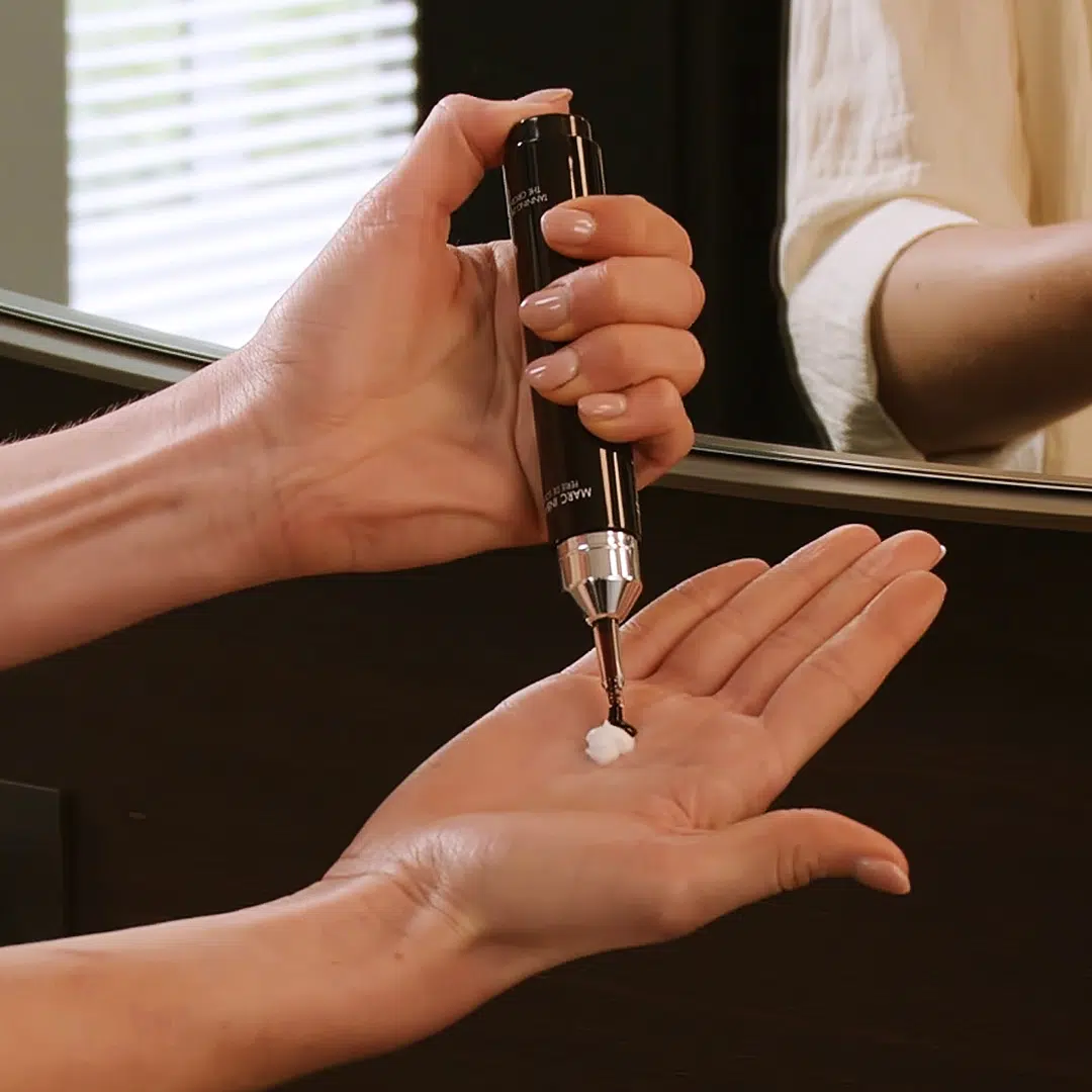 Meng het gewenste aantal druppels met je gebruikelijke hoeveelheid crème in de handpalm en verdeel deze egaal op de gewenste huidzone(s)